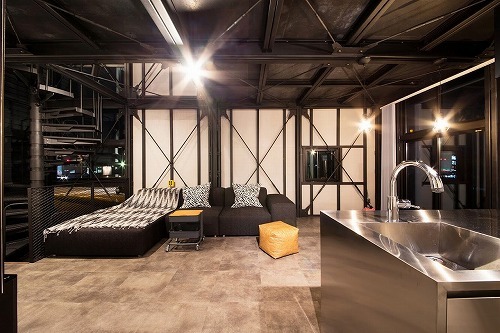 静岡県浜松市 I様邸 倉庫を思わせる空間にsongdreamオリジナルソファ「OVEST」を納品させていただききました。直線的なフォルムの黒いソファと黒いむき出しの鉄骨はインダストリアルな印象でありながら空間をシンプルに見せてくれています。色が統一されているのでこれからいろいろな飾り付けをしていく時にイメージがぶつからないので選択肢が豊富です。空間と家具を同時進行で選ばれていたI様の計画性を感じます。男性的なイメージでモダンインテリアとインダストリアルスタイルがうまく融合しています。