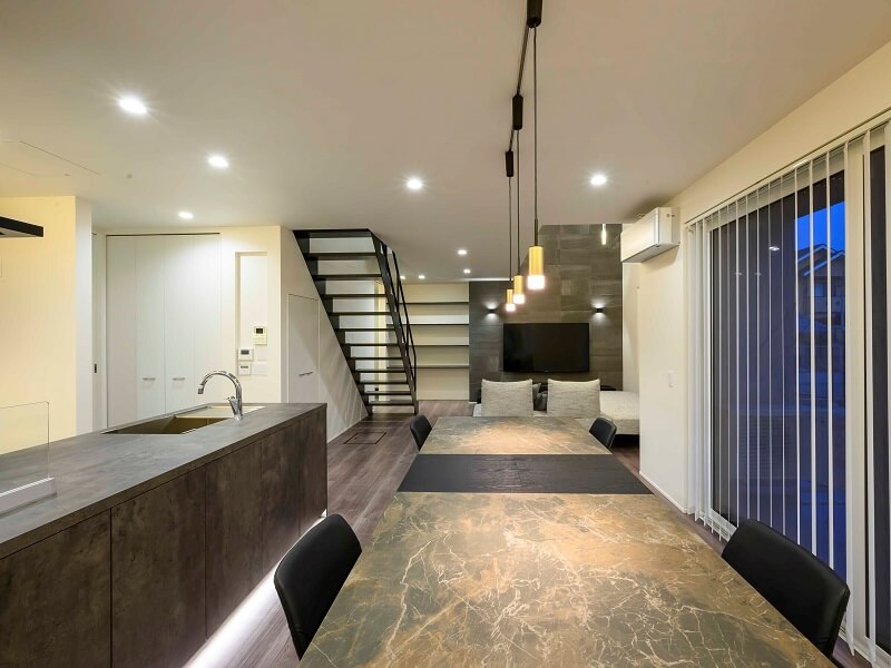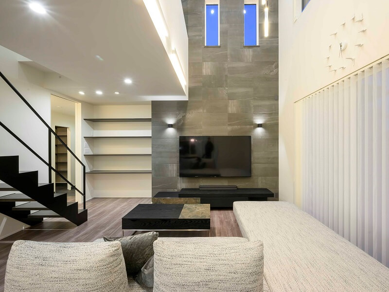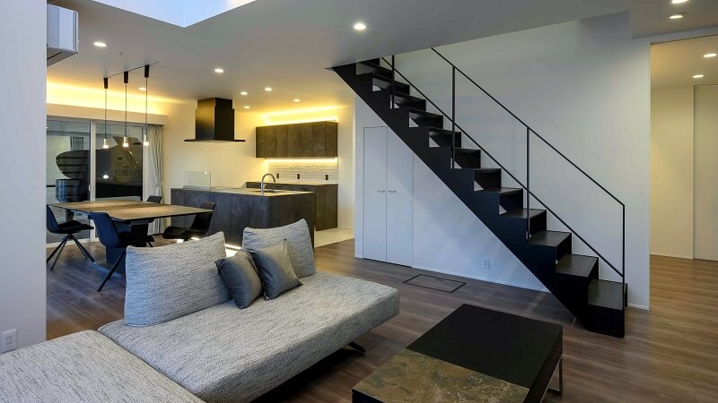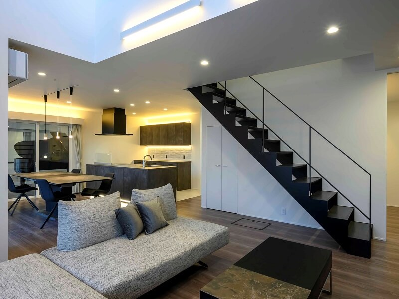 吹き抜け・鉄骨階段と「ANGELO」の抜け感でお部屋をより広く見せています。