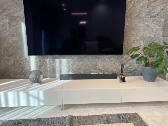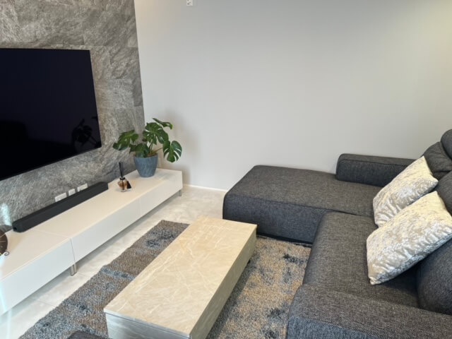 ホワイトとダークグレーを基調にして統一感のある空間になってい ます。