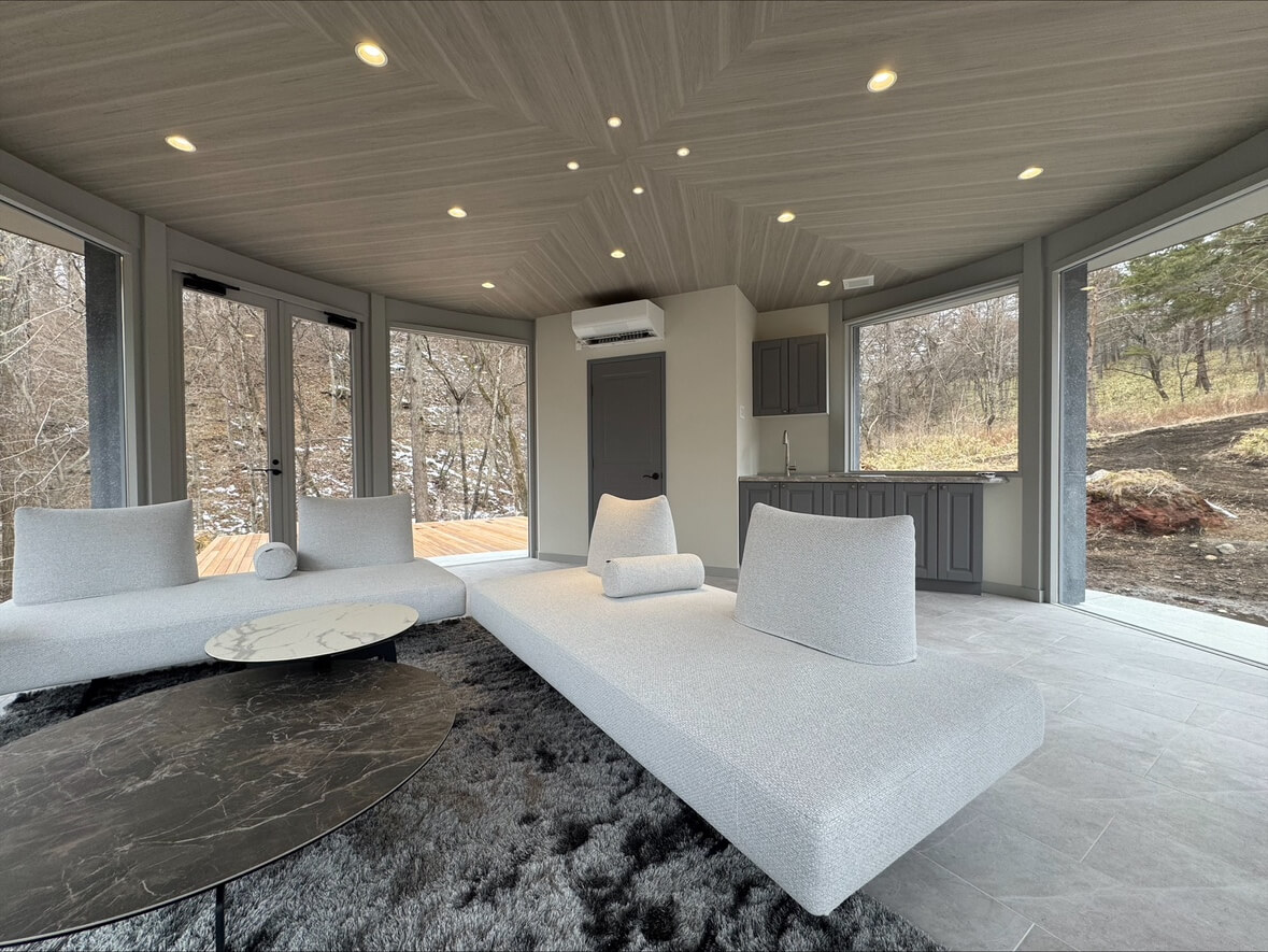 長野県 K様 広大な自然に囲まれた開放的なドーム空間に、ご夫婦のくつろぎの時間を彩るアンジェロのソファをお選びいただきました。 景色と調和するその佇まいが、ゆったりとした贅沢なひとときを演出します。 このたびはお選びいただき誠にありがとうございました。