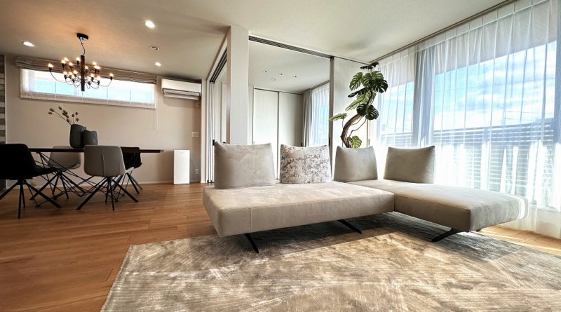 続きを読む開放感あるリビングにsongdreamの「OTTO」と「Angelo」を使って和モダンテイストの空間を演出しています。 大きくて、広い窓の開放感をアンジェロが空間を塞がないことで魅力を引き出しています。シンプルなデザイン