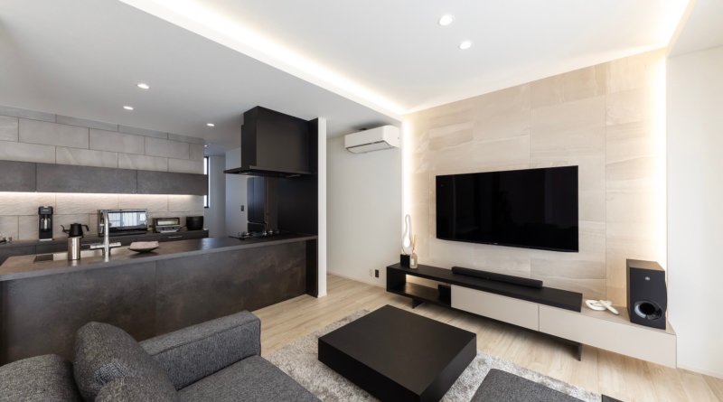 明るめの内装にブラックのキッチンが素敵なお宅に納品させていただきました。 所々にバランスよくブラック色を取り入れる事で、統一感のあるコーディネートになっています。 建具や照明レールの他にも、ダイニングテーブル・テレビボー