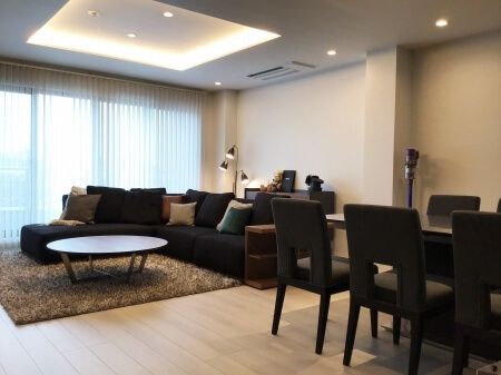 続きを読む図面上で実感できないほどのお部屋の広さに驚きました。 ダイニングテーブル「OBLO」、カウチソファー「RUSCELLO」 共に大型でサイズ感を感じさせない空間と高級感溢れるお部屋がとても素敵に感じます。 仲間が集まるとき
